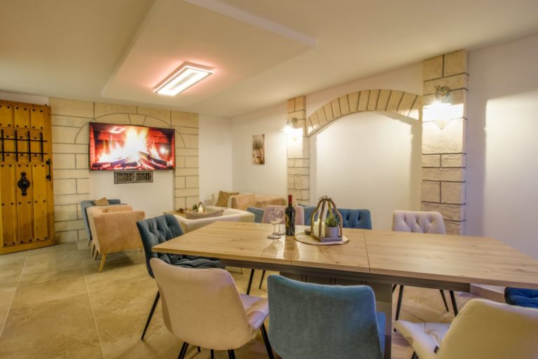 Den Abend gemeinsam als Gruppe in geselliger Runde ausklingen lassen? Gerne stellen wir hier unseren liebevoll eingerichteten Aufenthaltsraum zur Verfügung – auf Anfrage für maximal 14 Personen. Zur Ausstattung gehören ein großer Smart TV, ein Kühlschrank, Geschirr und Besteck, sowie eine Auswahl an Weinen.